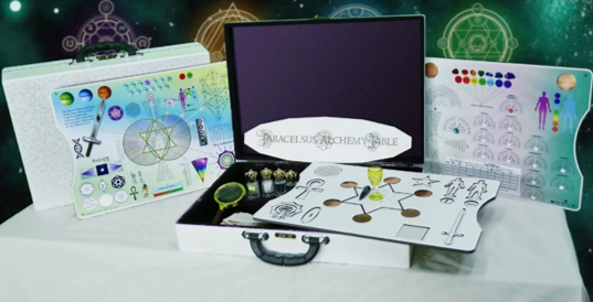 MESA ALQUÍMICA DE PARACELSO é um sistema de terapia baseado em seus estudos de alquimia, metafísica, filosofia, naturopatia e também nas mesas radiônicas convencionais porém com diversas inovações e potencializações alquímicas, tornando o dispositivo uma máquina radiestésica ímpar.